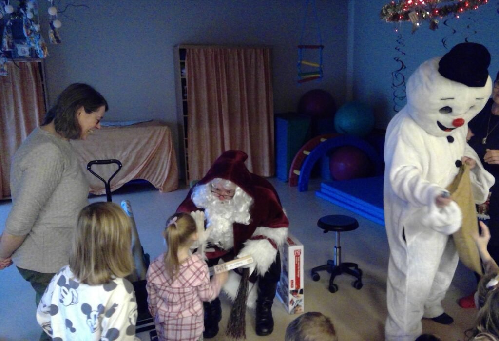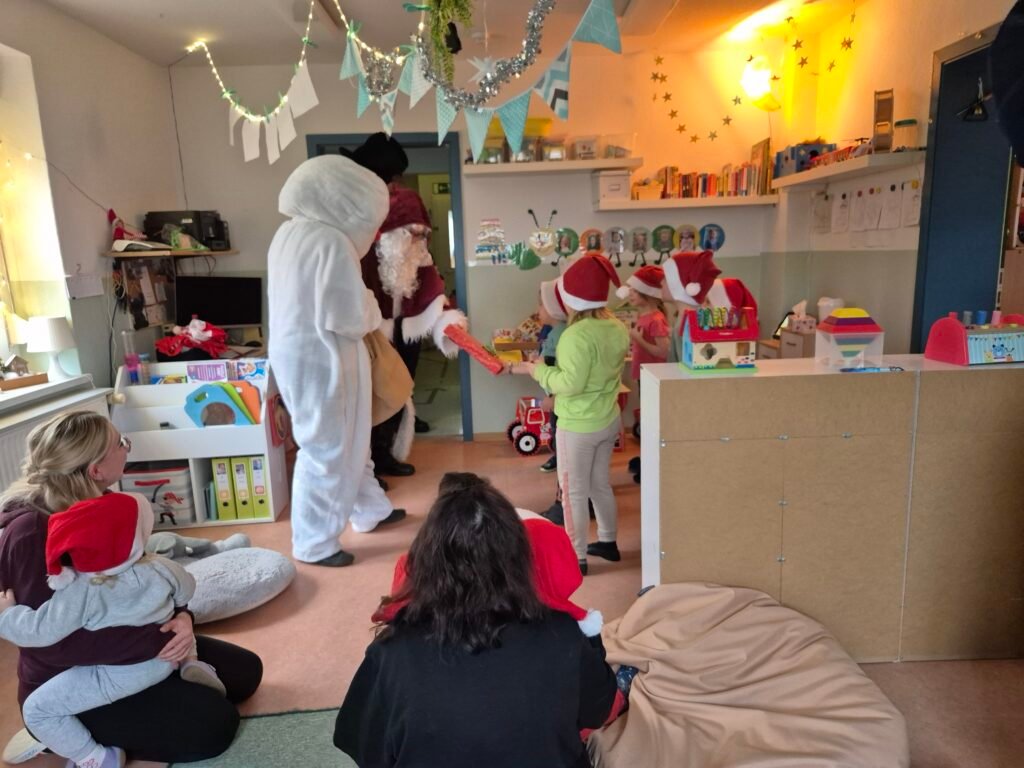 Spätestens als alle Kinder einen kleinen „Schokololli“ vom Schneemann in den Händen hielten, strahlten die Gesichter um die Wette. Und dann wurde es spannend. Die Geschenke! In diesem Jahr durfte sich die Kita über neue vielseitige Spielsammlungen freuen – darunter Brettspiele, Motorikmaterialien und Kita-taugliche Lernspiele, die sowohl das gemeinsame Miteinander als auch die sprachliche und kognitive Entwicklung der Kinder fördern. Auch die Bewegung kommt nie zu kurz bei uns, daher gab es noch ein Zimmertrampolin sowie ein Indoorklettergerät für die Jüngsten.