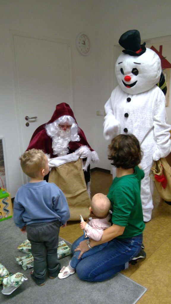 Gemeinsam begrüßten sie die Kinder, die natürlich nicht unvorbereitet waren. Ganz selbstverständlich, trugen die Kinder Gedichte vor und sangen Weihnachtslieder. Der kleine Schneemann sorgte mit seinen Späßen immer wieder für Gelächter, nahm den Kleinsten die Aufregung und brachte eine herrlich gelöste Stimmung mit.