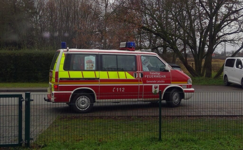 Nachdem alles ausgepackt war und der Weihnachtsmann noch ein paar warme Worte an die Kinder richtete, stieg er wieder in die Feuerwehr ein. Ein letztes Winken – und schon düste er davon, zurück in die vorweihnachtliche Welt, da er noch viele weitere Kinder besuchen will.